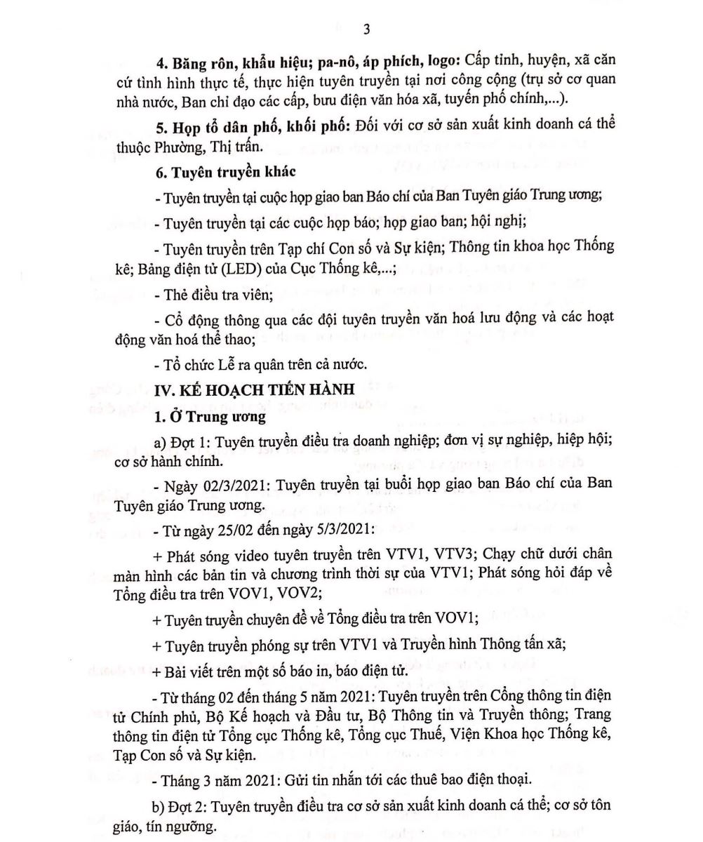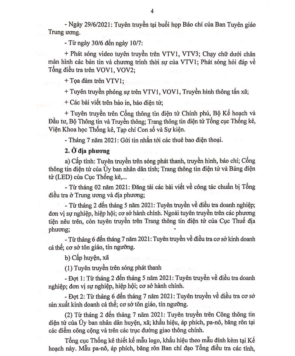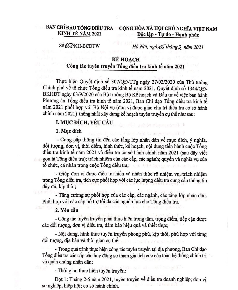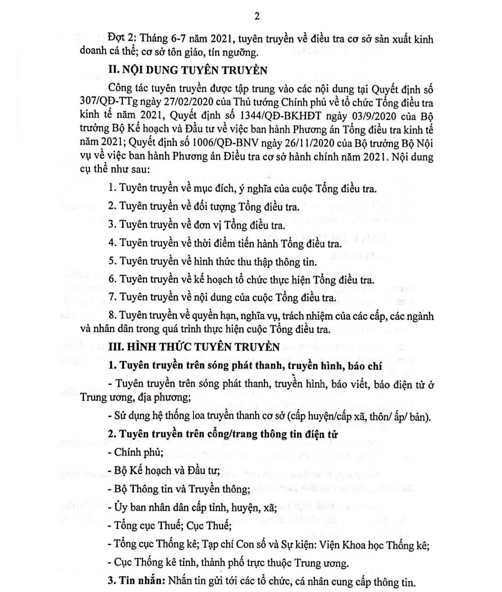 Kế hoạch công tác tuyên truyền Tổng điều tra kinh tế năm 2021