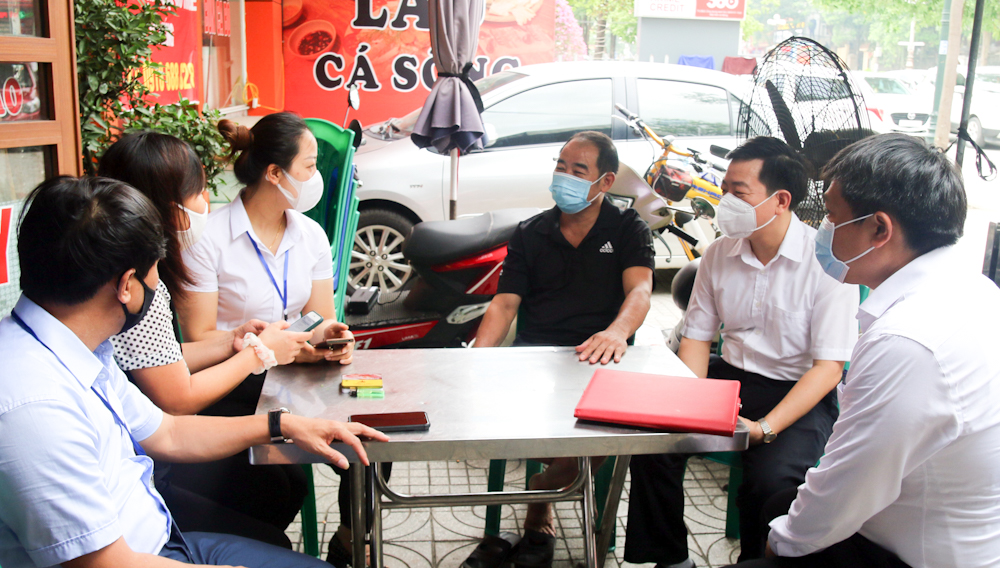Ban Chỉ đạo Tổng điều tra kinh tế và điều tra cơ sở hành chính của tỉnh và thành phố Việt Trì kiểm tra quá trình thu thập dữ liệu tại cơ sở kinh doanh trên địa bàn phường Nông Trang